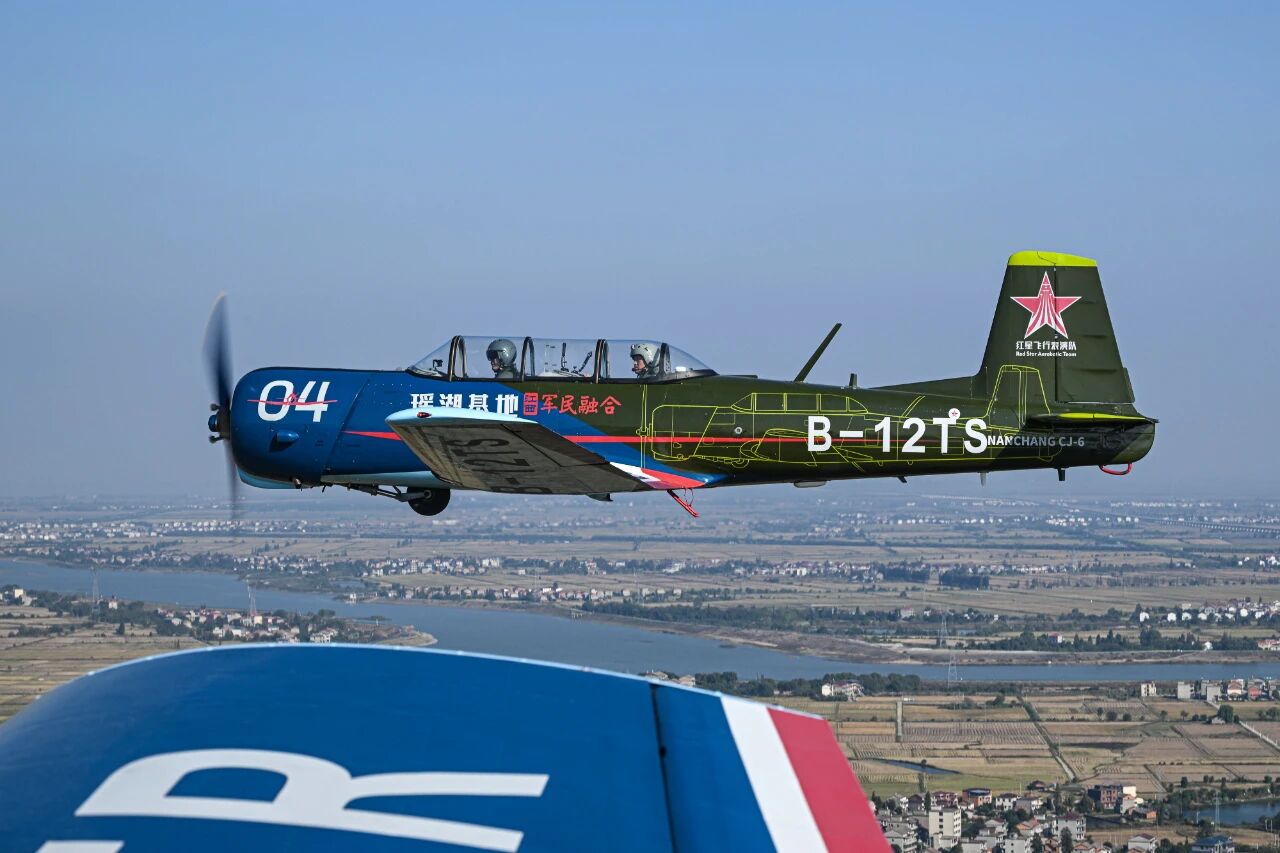 民用初教-6针对航空运动、飞行培训等多元场景进行了优化。 “红星”飞行表演队呈现的一系列既惊险刺激又优美流畅的飞行动作,释放了这款初教-6在民用领域的无限潜力与活力。